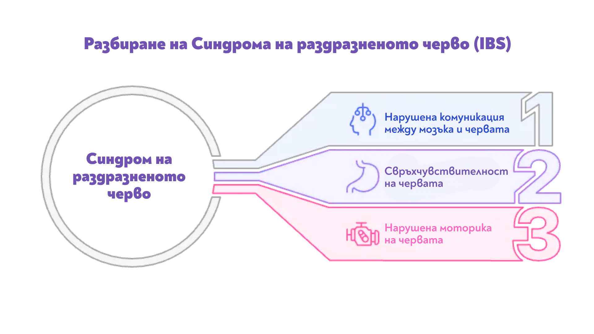 Синдромът на раздразненото черво е хронично функционално разстройство на стомашно-чревния тракт. Това означава, че червата изглеждат напълно нормални при изследване (няма възпаление или структурни увреждания), но не функционират правилно. Проблемът се крие в нарушената комуникация между мозъка и червата, известна като ос „мозък-черва“.