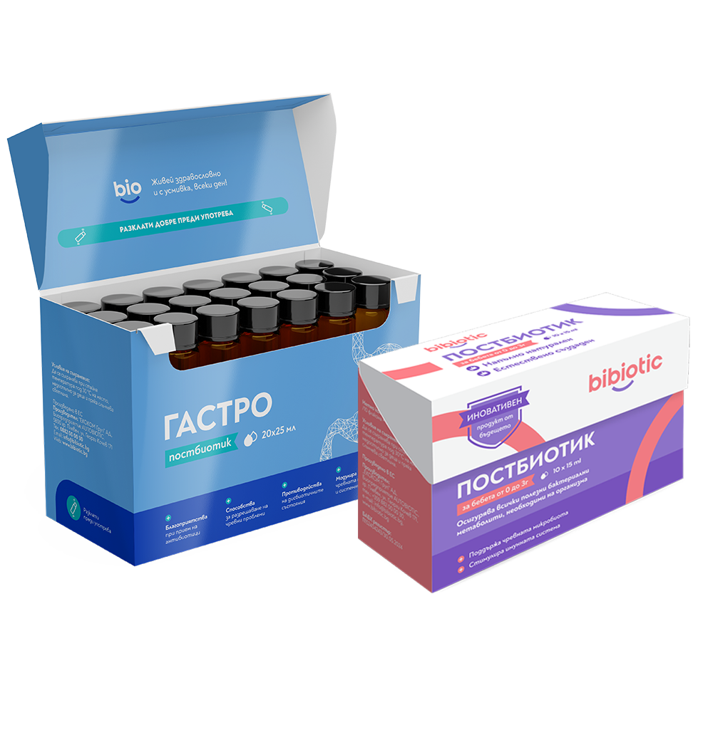 Комбинираният пакет обединява силата на два постбиотични продукта, създадени да поддържат баланса на чревната микрофлора и да осигурят комфорт и защита за деца и възрастни.