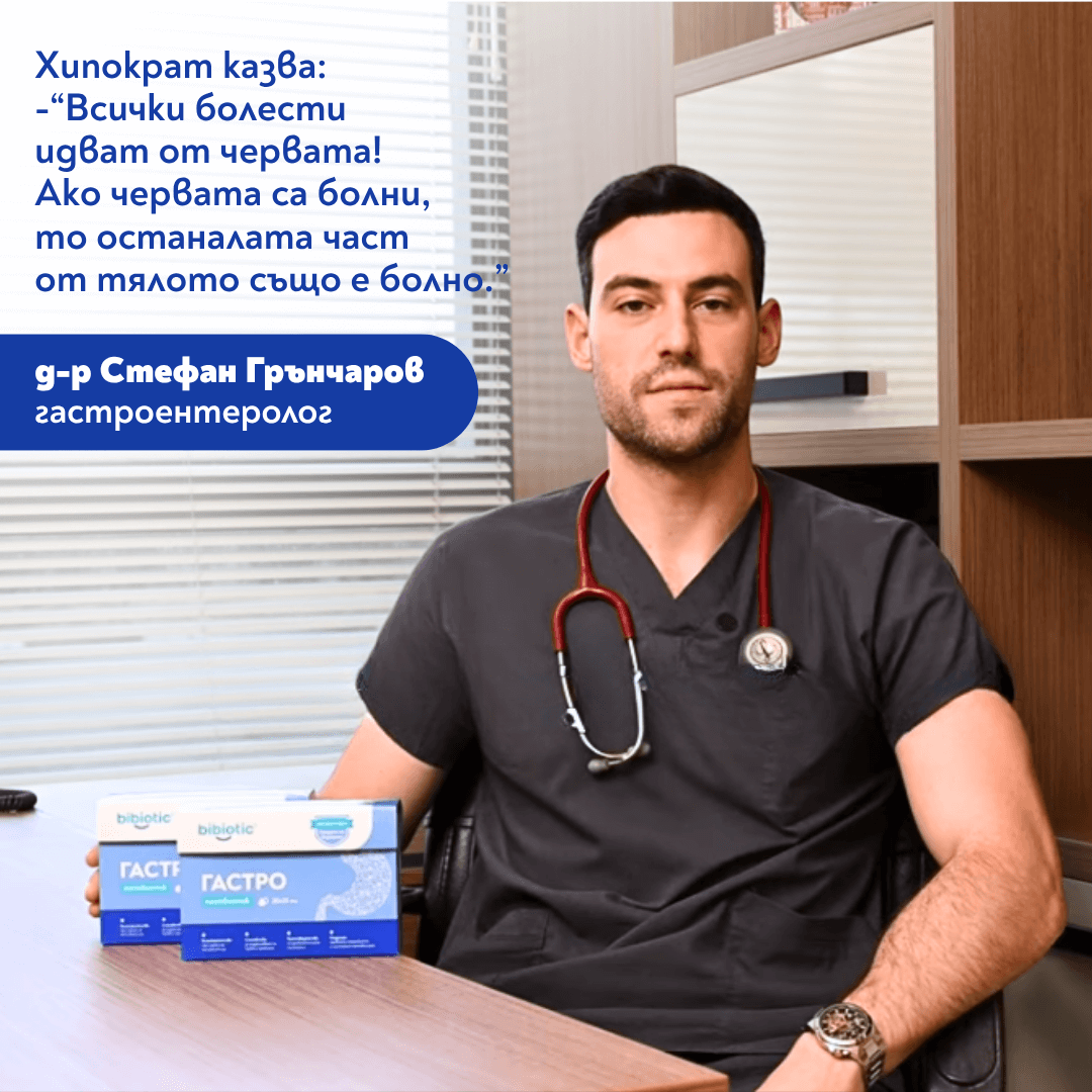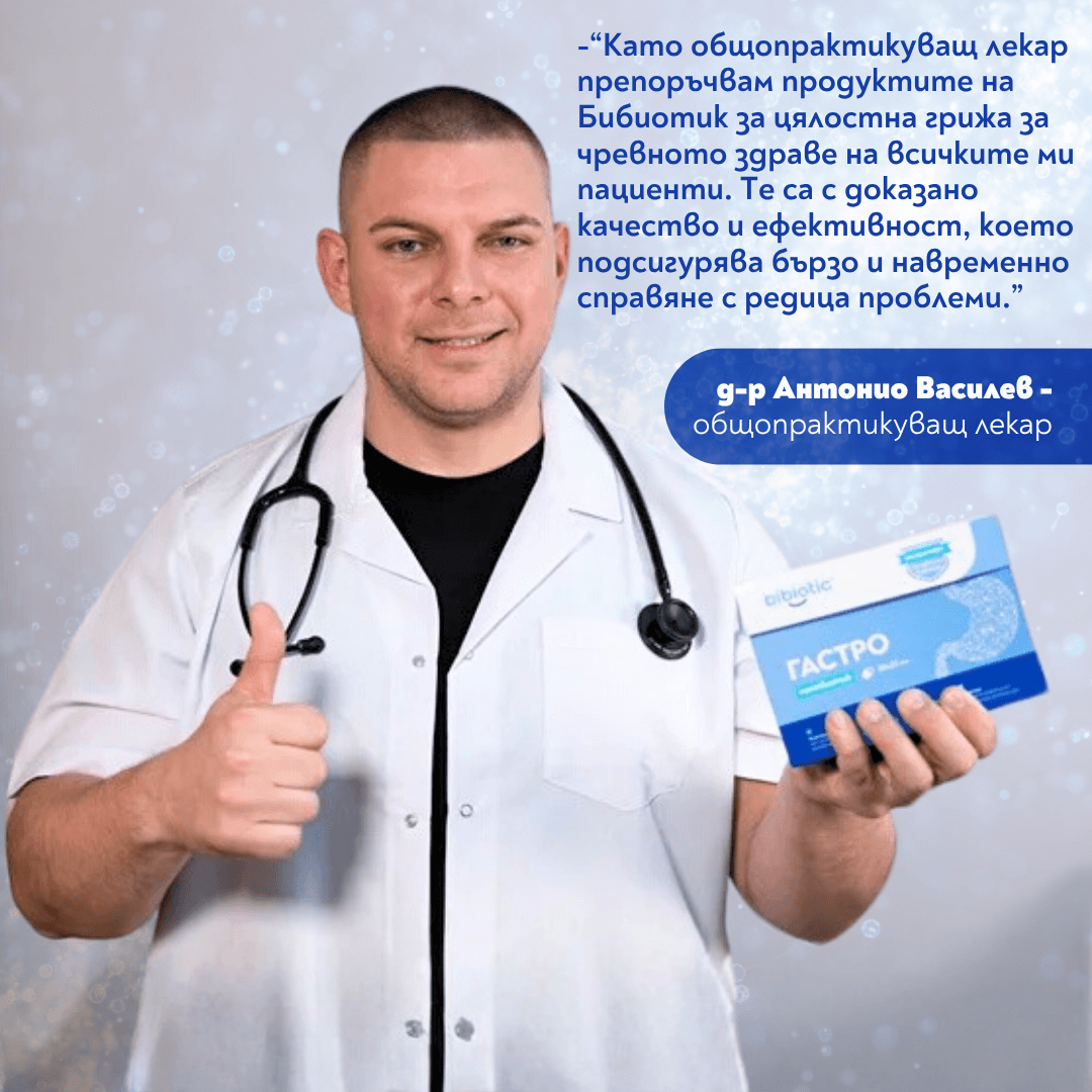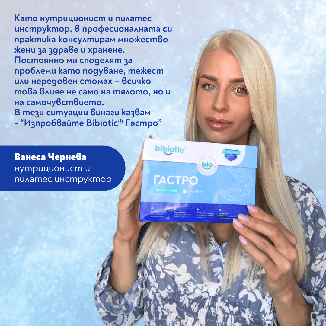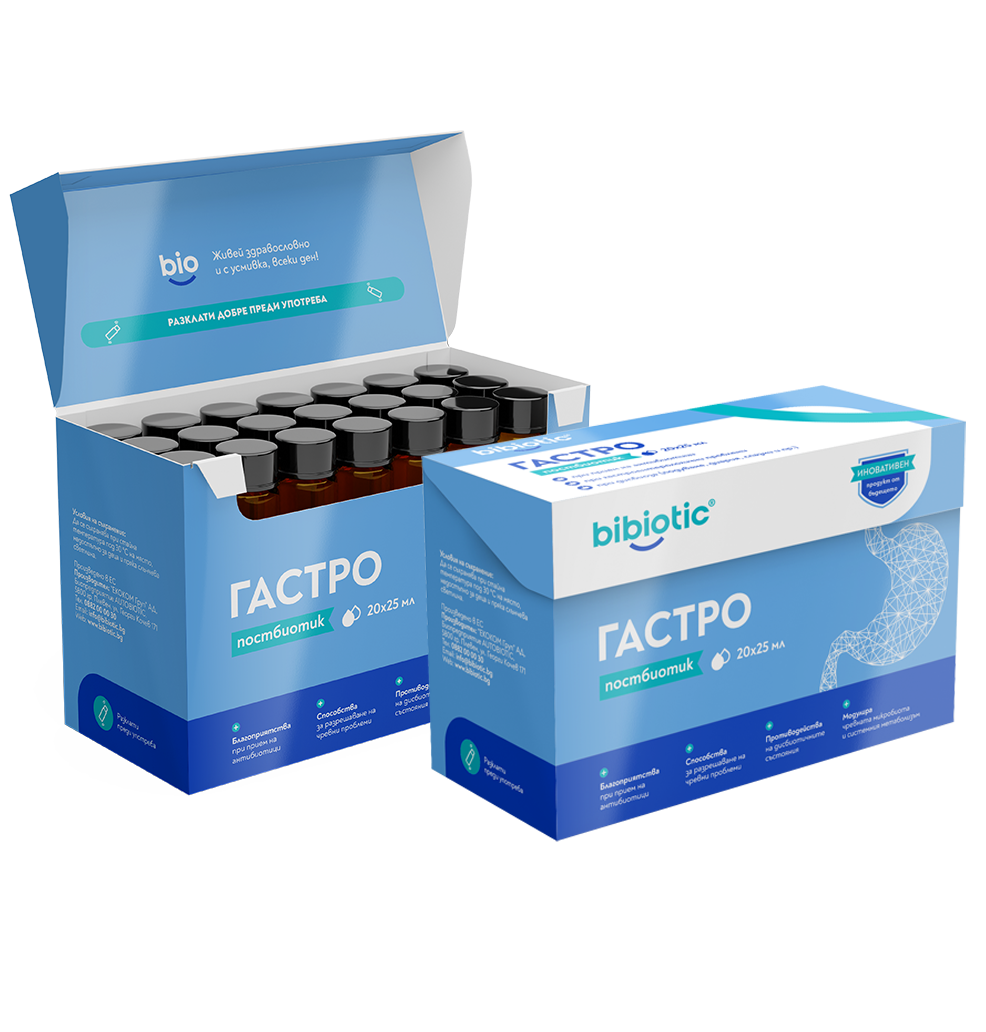 Bibiotic® Гастро е специално разработена хранителна добавка – постбиотик, създадена да поддържа здравето на храносмилателната система и да възстановява естествения баланс на чревната микрофлора. Продуктът възстановява чревния баланс, като подпомага полезните бактерии и нормализира микрофлората, поддържа здрава чревна бариера като укрепва естествените защитни механизми на организма, и подпомага храносмилателния комфорт – намалява усещането за тежест, подуване, газове и стомашен дискомфорт.