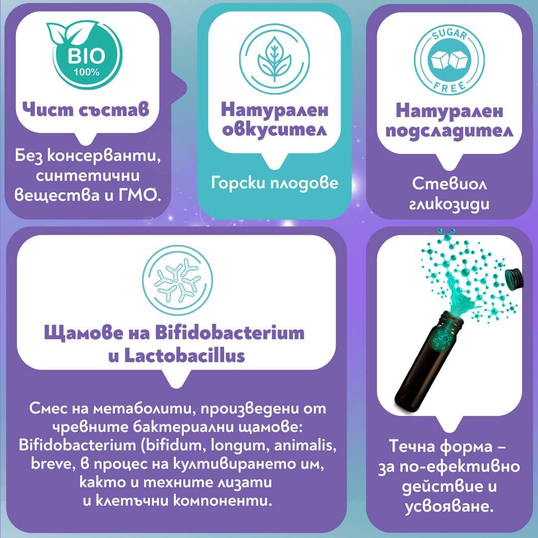 При пътуване организмът е изправен пред рязка промяна на средата, а храносмилателната система често реагира първа. Смяната на храната, дневния режим и климата може да наруши чревния баланс и да доведе до подуване, диария или общ стомашен дискомфорт. Bibiotic® за деца и възрастни подпомага именно този преходен период, като осигурява бърза и стабилна подкрепа без нужда от адаптация, характерна за продуктите с живи бактерии като пробиотиците. Готовите постбиотични метаболити подпомагат нормалната функция на храносмилателната система при контакт с непознати храни, различни мазнини, подправки и микроорганизми, като ограничават условията за развитие на нежелани бактерии. При смяна на локацията и контакт с нова вода или сурови храни Bibiotic® за деца и възрастни подпомага целостта на чревната бариера и затруднява преминаването на токсини и патогени в организма. Едновременно с това той спомага за поддържане на стабилна чревна среда при нередовно хранене, смяна на часови пояси и липса на рутинен дневен ритъм. Климатичните промени, като жега, влажност или студ, също могат да окажат влияние върху чревната функция, а Bibiotic® за деца и възрастни подпомага адаптацията и комфорта на храносмилателната система. Благодарение на това, че не съдържа живи бактерии, продуктът действа веднага и остава ефективен, независимо от температурата и условията на пътуване, което го прави особено подходящ за travel употреба.